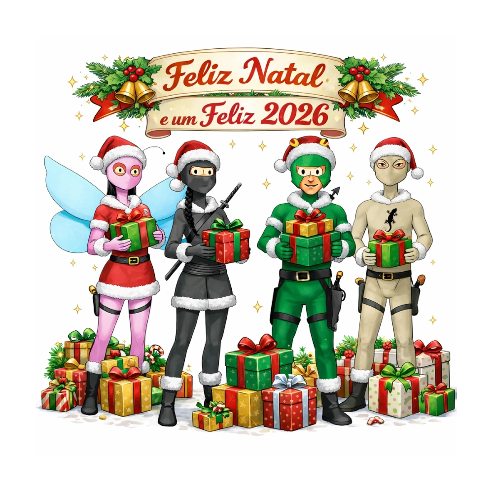 O Homem Sapo e seus heróis entram no clima das festas, como nos livros, para desejar a todos um Feliz Natal e um Feliz Ano Novo de 2026.Que o próximo ano traga ainda