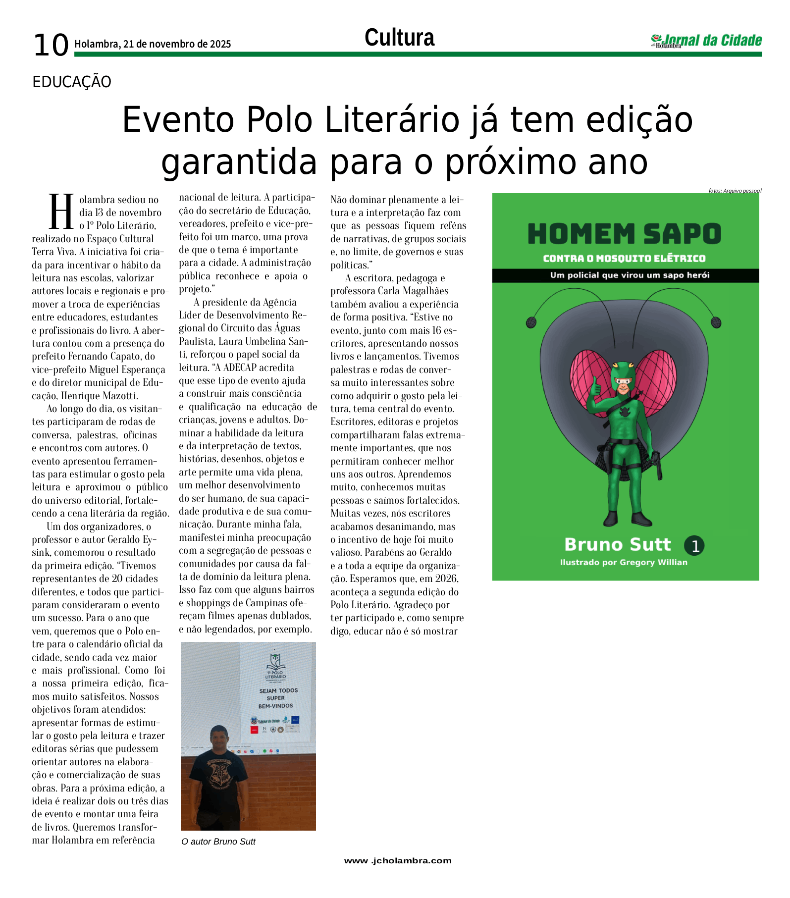 Homem Sapo no jornal e evento literário